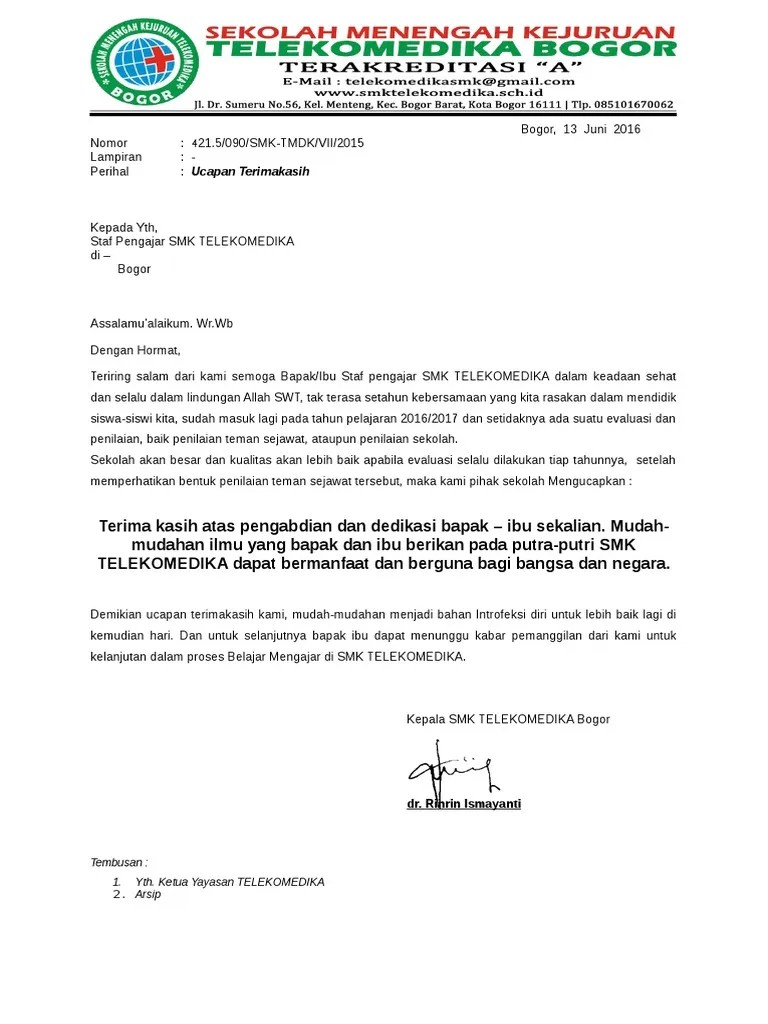 Meski contoh di atas dikirim oleh wali murid. Untuk menulis surat berisi ucapan terima kasih kepada guru dalam bahasa hellip. Dengan hormat, melalui surat ini, saya, .